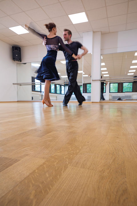 In Tanzschulen spielt die Bodenbeschaffenheit eine wichtige Rolle, schließlich muss der Untergrund hohen Belastungen standhalten. Damit das Tanzparkett nicht nur optisch attraktiv, sondern auch langfristig widerstandsfähig bleibt, empfiehlt sich eine Behandlung mit Hartwachs-Öl von Osmo. Es schafft eine pflegeleichte, wohngesunde Oberfläche und ist zudem trittfest, wasser- sowie schmutzabweisend und dauerhaft strapazierbar.