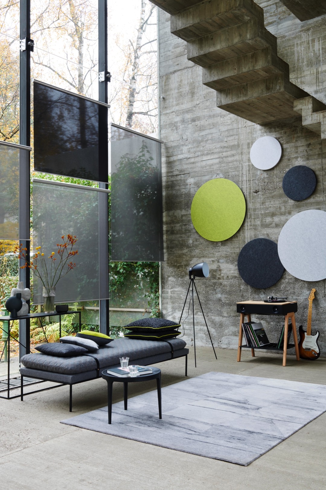 Nature Living, das Deco Team Trendthema 2022, bringt maximale Styling-Vielfalt fürs Interieur. Wir stellen Ihnen die detailreichen Ideen zu den drei Trends mit inspirierenden Fotostrecken in BTH Heimtex vor, hier ein weiteres Beispiel zum Thema Design. Pur, minimalistisch und alles andere als Standard: Design trifft in diesem Setting auf Eco-Living. Der unverwechselbare Charakter des Raumes wird durch smarte Design-Elemente unterstrichen, die das Mega-Thema Nachhaltigkeit intelligent spielen. Die ausgeklügelten Wand-Elemente und die formschönen Rollos von Buchheister sind aus nachwachsenden Rohstoffen oder aus teilweise recycelten und recyclingfähigen Materialien hergestellt. Auch bei den Möbelstoffen von Höpke und den Makalu Design Teppichen von Paulig since 1750 kommen nachhaltige Materialien zum Einsatz.