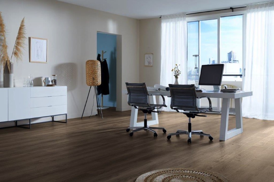 Flooring Concept, der neue Mflor- und Solcora-Vertriebspartner, präsentiert ein echtes Produkt-Highlight: Solcora Silence Oak 21dB. Es verbindet den Verlegekomfort eines Rigid Board-Klickdesignbelages mit Drop-Down-Verbindung, das Trittschallverbesserungsmaß von 21 dB für angenehmes, komfortables Wohngefühl mit der klassischen, matten, natürlichen Ausstrahlung eines Bodenbelages in attraktiven Eichefarbtönen.