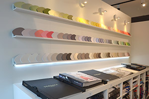 Wer den imponierenden Neubau betritt, wird dazu eingeladen, durch eine aufgeräumte, nach Themen geordnete Ausstellungsfläche im Erdgeschoss zu flanieren und die verschiedenen Einrichtungsideen auf sich wirken zu lassen. „Unser Ansatz ist, das Raumausstatter­handwerk interessanter zu machen und zu zeigen, was wir können“, meint Dietrich. Bedient werde jeder Kunde – ob Student mit wenig Geld oder Auftraggeber aus dem Objekt­bereich, was bei Alena rund 60 % des Umsatzes ausmacht.