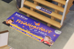 Das Logo vom Frühlingsfest ziert immer noch den Aufgang zur Gartenholz-Ausstellung.